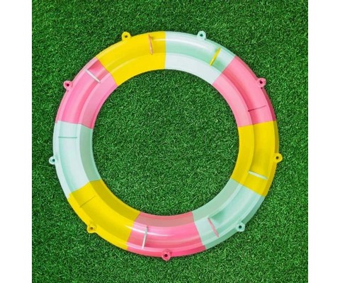 Яркая круглая конструкция с двумя сиденьями, водным каналом и съемным чехлом станет любимым местом для игр на даче, во дворе или в помещении.
