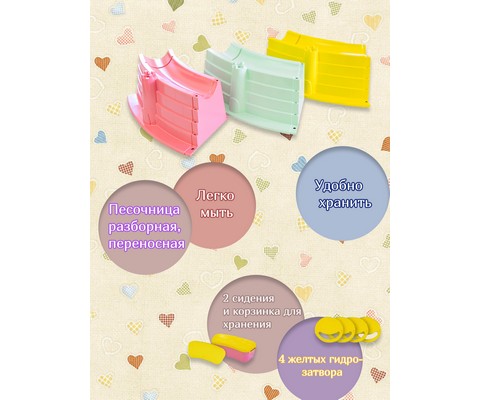 Бассейн-песочница детская сборный с двумя сидениями (желтый, розовый, зеленый).