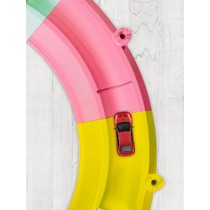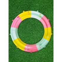 Яркая круглая конструкция с двумя сиденьями и водным каналом станет любимым местом для игр на даче, во дворе или в помещении.