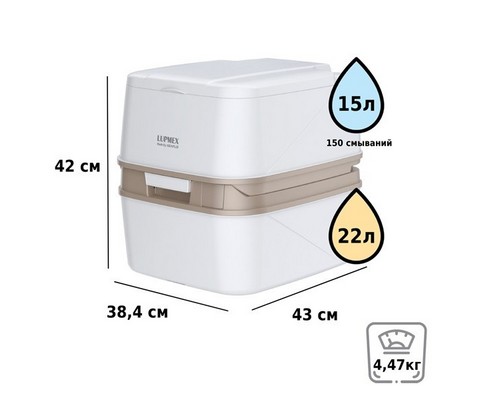 Биотуалет Lupmex 79123 22 л без индикатора устанавливается при отсутствии стационарной канализации.