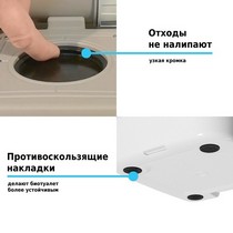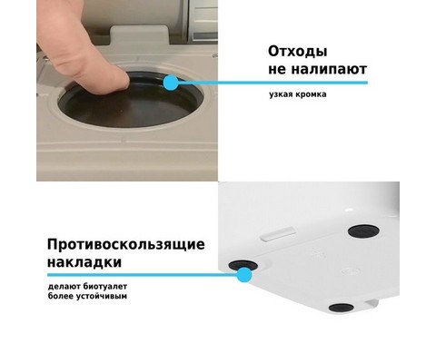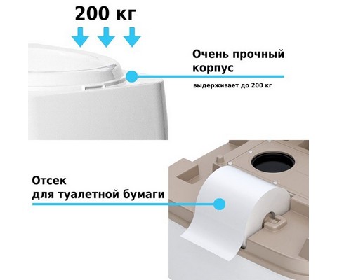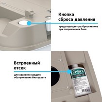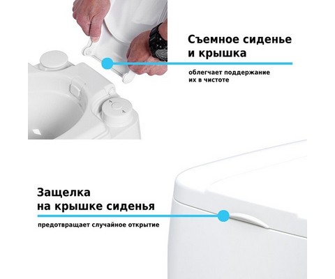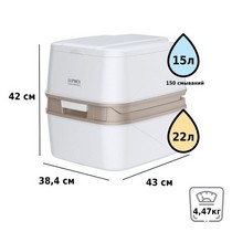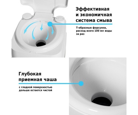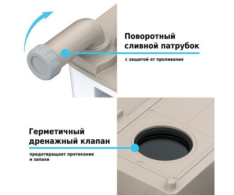 Бак для чистой воды на 15 л (150 смываний) и большой бак для отходов на 22 л.