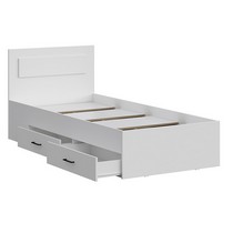 Кровать оснащена выкатными ящиками для одежды и белья.