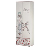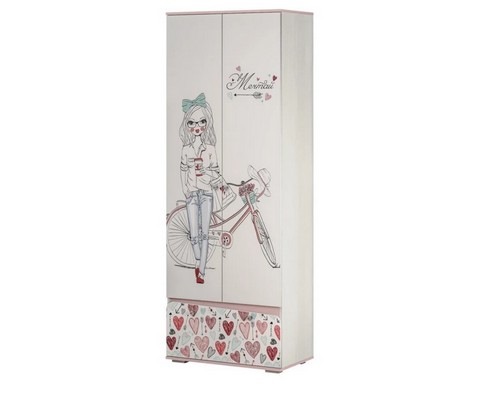 Шкаф двухдверный оснащен штангой для вешалок, полками и выдвижным ящиком.