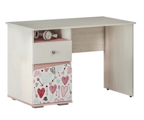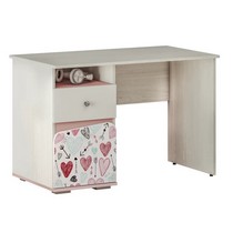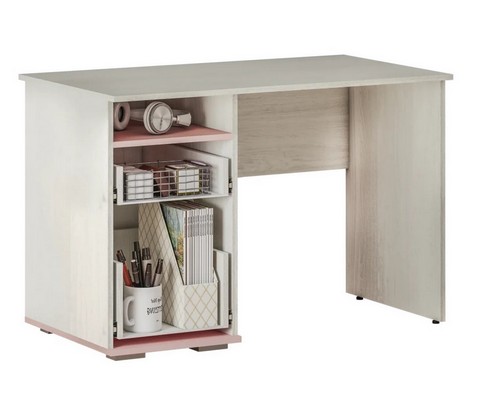 Стол оснащен двумя выдвижными ящиками разной высоты, открытой полкой.