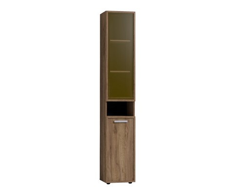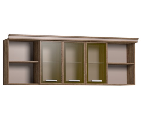 Шкафчик (81) с двумя открытыми отделениями и тремя за стеклянными тонированными фасадами.