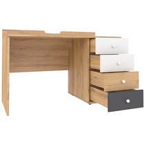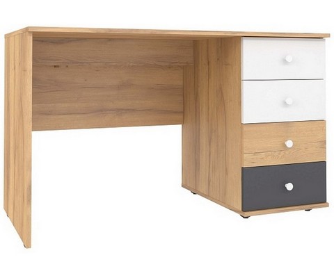 Письменный стол оснащен тумбой с четырьмя выдвижными ящиками, откидной частью на столешнице, которая открывается за плавный вырез.