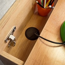 За откидной крышкой стола находится ниша для хранения и отверстие с заглушкой для вывода проводов.