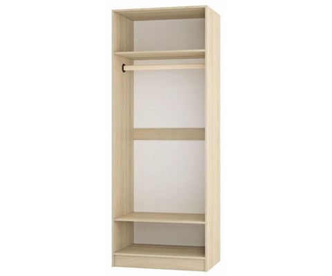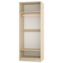 Шкаф оснащён двумя полками и штангой для вешалок.