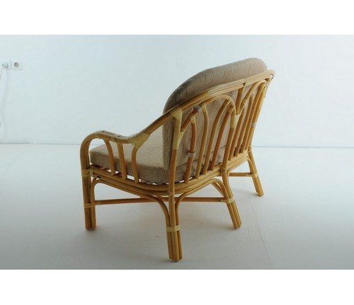Каркас - натуральный ротанг, подушка - ткань рогожка с мягким наполнителем.