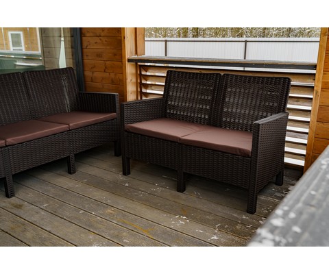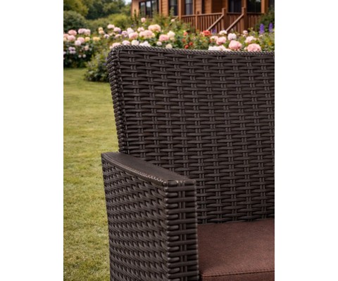 Диван двухместный садовый под ротанг СадКо (темно-коричневый с коричневой подушкой)