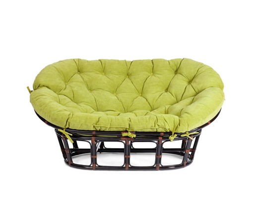 Диван Mamasan 23/02 W Antique brown (античный черно-коричневый) из натурального ротанга с оливковой подушкой