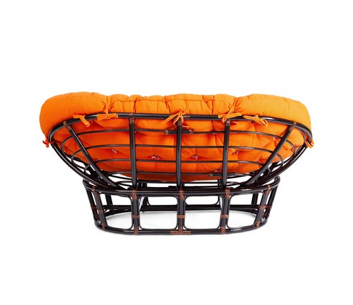 Диван Mamasan 23/02 W Antique brown (античный черно-коричневый) из натурального ротанга с оранжевой подушкой