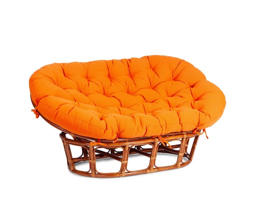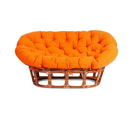 Диван Mamasan 23/02 W Cognac (коньяк) из натурального ротанга с оранжевой подушкой