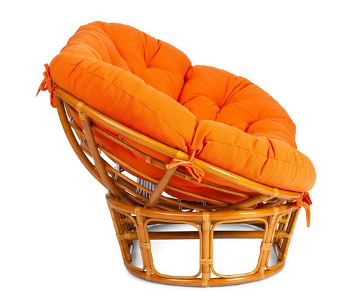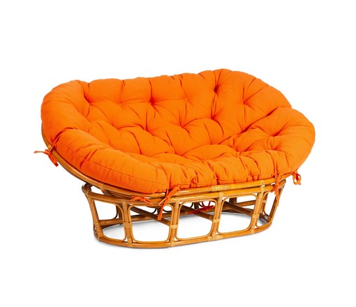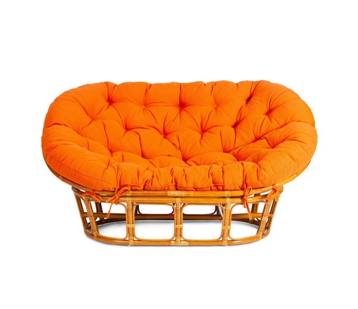 Диван Mamasan 23/02 W Pecan (орех) из натурального ротанга с оранжевой подушкой