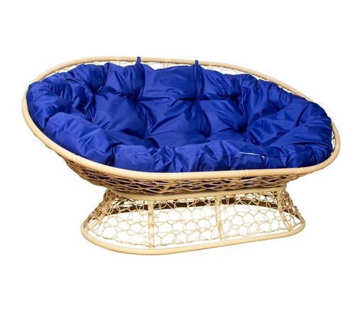 Цвет изделия: каркас, плетение - бежевое, подушка - синяя.