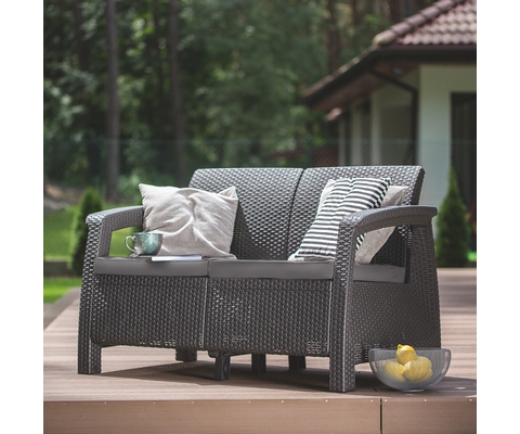 Двухместный садовый диван изготовлен из прочного полипропилена, поэтому имеет высокую механическую прочность и долговечность.