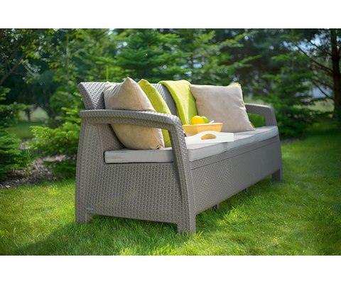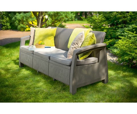 Диван не выгорает на солнце, устойчив к любым видам осадков и перепадам температуры.