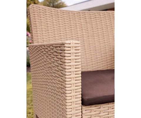 Диван трехместный садовый под ротанг СадКо (бежевый с коричневой подушкой)