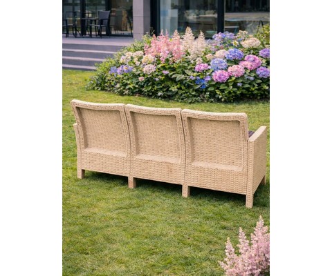 Диван трехместный садовый под ротанг СадКо подарит вам комфортный отдых на свежем воздухе, объединяя стильный дизайн, практичность и надежность.