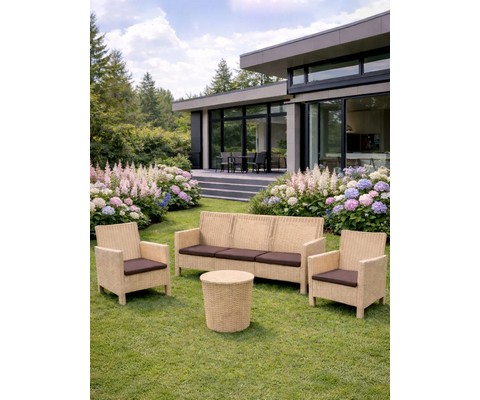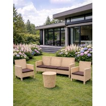 Диван трехместный садовый под ротанг СадКо (бежевый с коричневой подушкой).