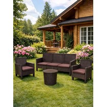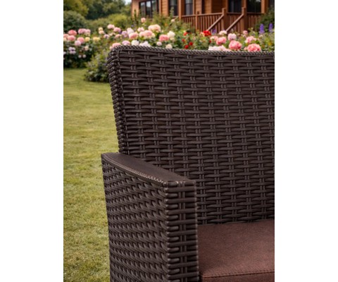 Диван трехместный садовый под ротанг СадКо (темно-коричневый с коричневой подушкой)