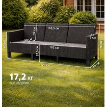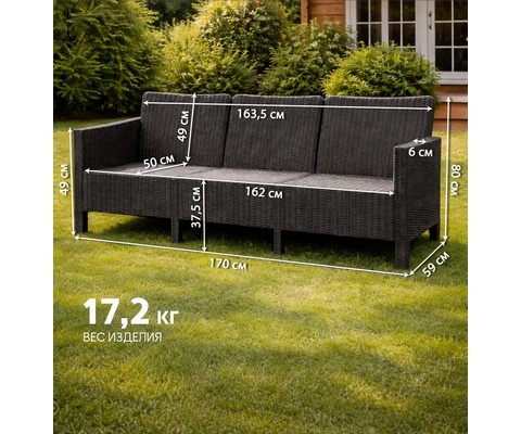 Диван трехместный садовый под ротанг СадКо (темно-серый).