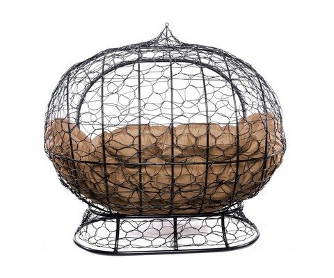 Диван УЛЕЙ на ножках с ротангом (черный с бежевой подушкой).