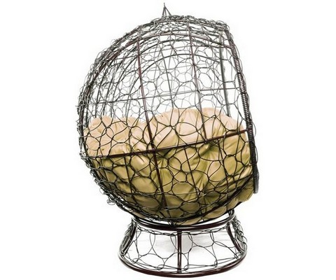 Диван УЛЕЙ на ножках с ротангом (коричневый с бежевой подушкой).