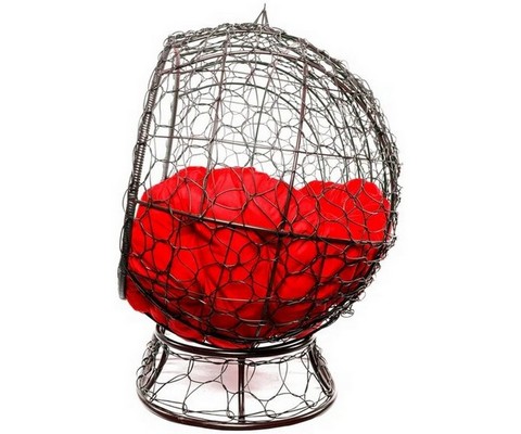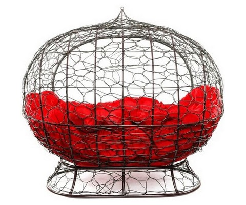Диван УЛЕЙ на ножках с ротангом (коричневый с красной подушкой).