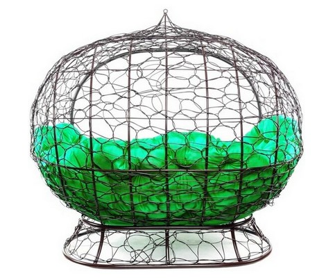 Диван УЛЕЙ на ножках с ротангом (коричневый с зеленой подушкой).