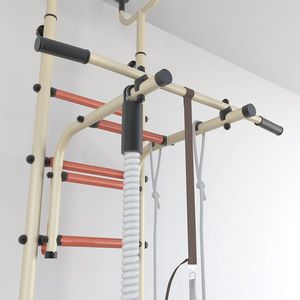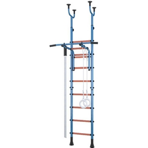 Гимнастические кольца: держатся на 2 шнурах, которые крепятся в клипсы на подвижном турнике. Регулировка по высоте.
