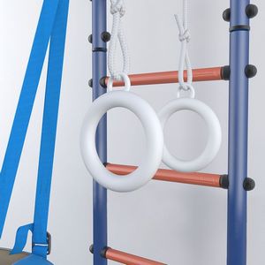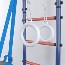 Гимнастические кольца: держатся на 2 шнурах, которые крепятся в клипсы на подвижном турнике. Регулировка по высоте.