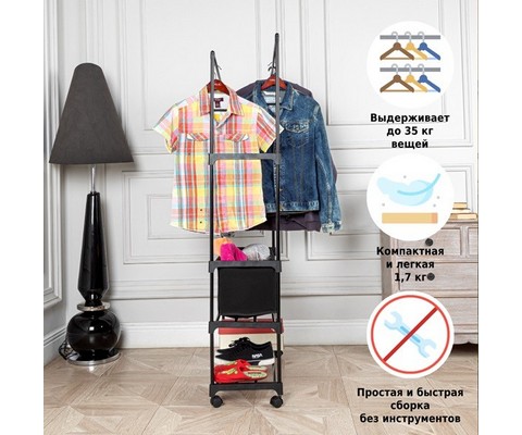 Двойная напольная вешалка для одежды Helex Home W-22, чёрная
