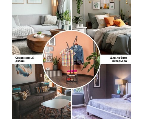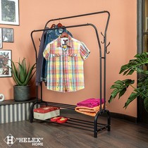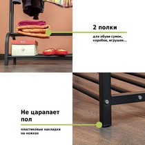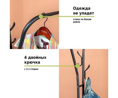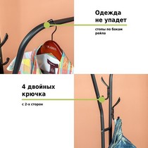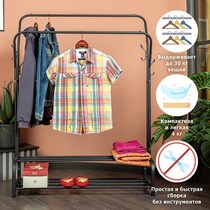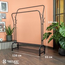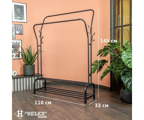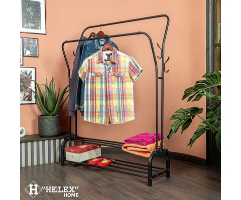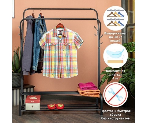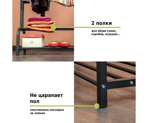 Двойная напольная вешалка для одежды W-21 чёрная имеет в конструкции 2 полки для хранения обуви.
