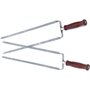 Двойной кованный шампур 55 см, материалы: сталь и дерево