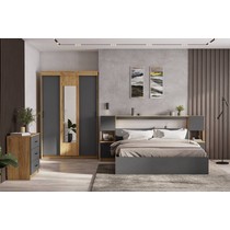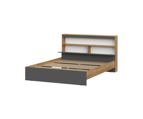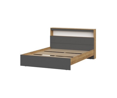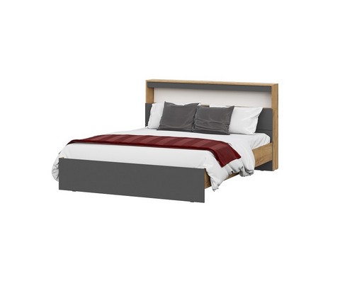 Корпус кровати выполнен в цвете дуб золотистый, а изголовье и изножье в цвете графит.