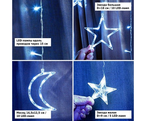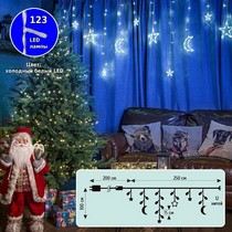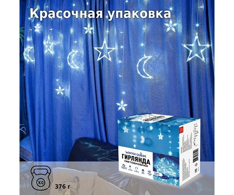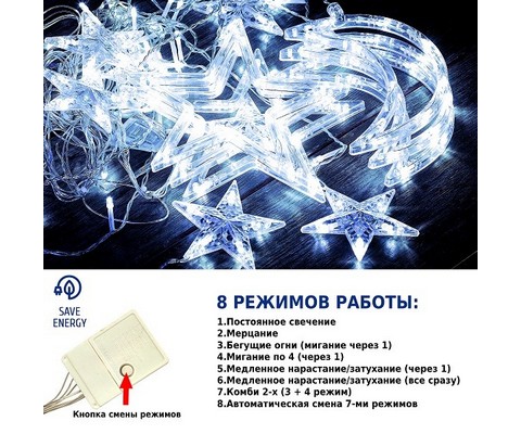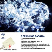 Электрическая гирлянда-занавес Winter Glade 123 лампы холодный белый имеет 8 режимов работы.