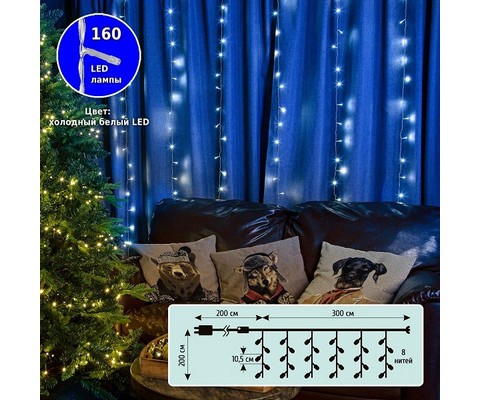 Электрическая гирлянда-занавес Winter Glade 160 ламп холодный белый