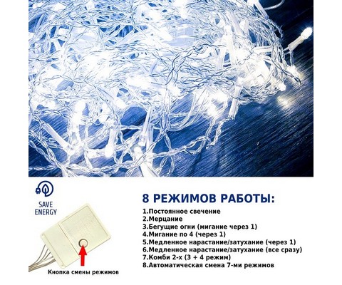 Варианты цвета: холодный белый LED (лампочки), прозрачный (провод).