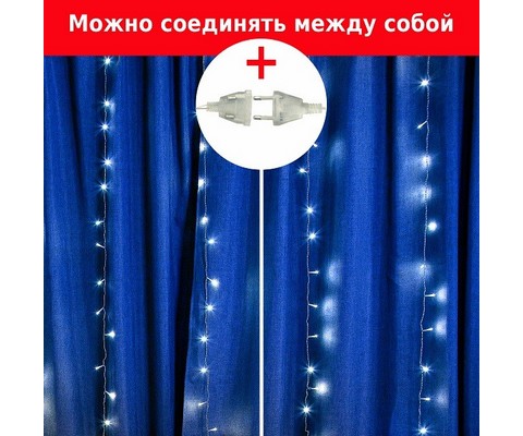 Электрическая гирлянда-занавес Winter Glade 160 ламп холодный белый с мерцающим светом лампочек.