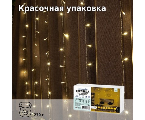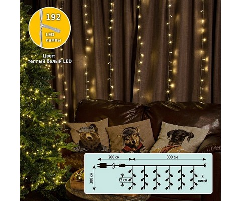 Электрическая гирлянда-занавес Winter Glade 192 лампы тёплый белый длиной 3 м.