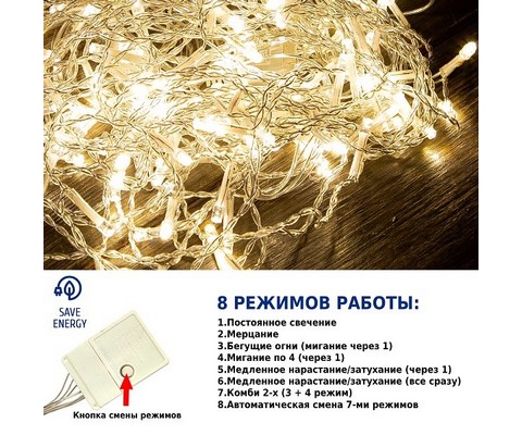 Варианты цвета: тёплый белый LED (лампочки), прозрачный (провод).