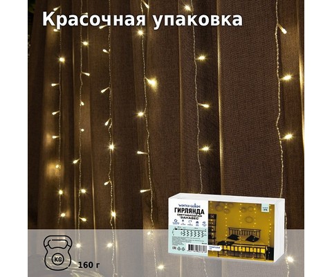 Электрическая гирлянда-занавес Winter Glade 96 ламп тёплый белый имеет длину 1,5 м.
