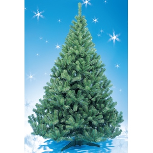 Характеристики: тип ели: искусственная. Цвет хвои: зеленый. Количество веток - 956 шт. Диаметр (по нижним веткам): 92 см. Длина хвои: 2,5 см. Тип подставки: крестообразная. Материал подставки: пластик. Диаметр подставки - 56 см. Упаковка: коробка. Размеры коробки (ДхШхГ): 128х27х32 см.
