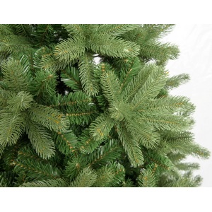 Характеристики: тип ели: искусственная. Цвет хвои: зеленый. Количество веток - 1549 шт. Диаметр (по нижним веткам): 116 см. Длина хвои: 2,5 см. Тип подставки: крестообразная. Материал подставки: металл. Диаметр подставки - 67 см. Упаковка: коробка. Размеры коробки (ДхШхГ): 128х43х46 см.