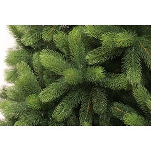 Характеристики: тип ели: искусственная. Цвет хвои: зеленый. Количество веток - 1061 шт. Диаметр (по нижним веткам): 100 см. Длина хвои: 2,5 см. Тип подставки: крестообразная. Материал подставки: металл. Диаметр подставки - 45 см. Упаковка: коробка. Размеры коробки (ДхШхГ): 128х32х43 см.