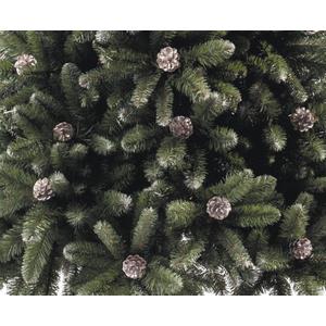 Характеристики: тип ели: искусственная. Цвет хвои: зеленый, белый. Количество веток - 966 шт. Диаметр (по нижним веткам): 128 см. Длина хвои: 3,5 см. Тип подставки: крестообразная. Материал подставки: металл. Диаметр подставки - 60 см. Упаковка: коробка. Размеры коробки (ДхШхГ): 120х40х40 см. Есть шишки - да. Заснеженная - да.