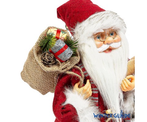 образ известного героя проработан до мелких деталей, таких как элементы костюма, мешок с подарками, фонарь на руке и очки в круглой оправе,