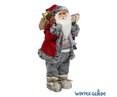 Фигурка Дед Мороз 60 см со снегоступами и фонарем (красный/серый)