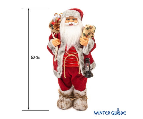 Фигурка Дед Мороз с фонарем (60 см) красный